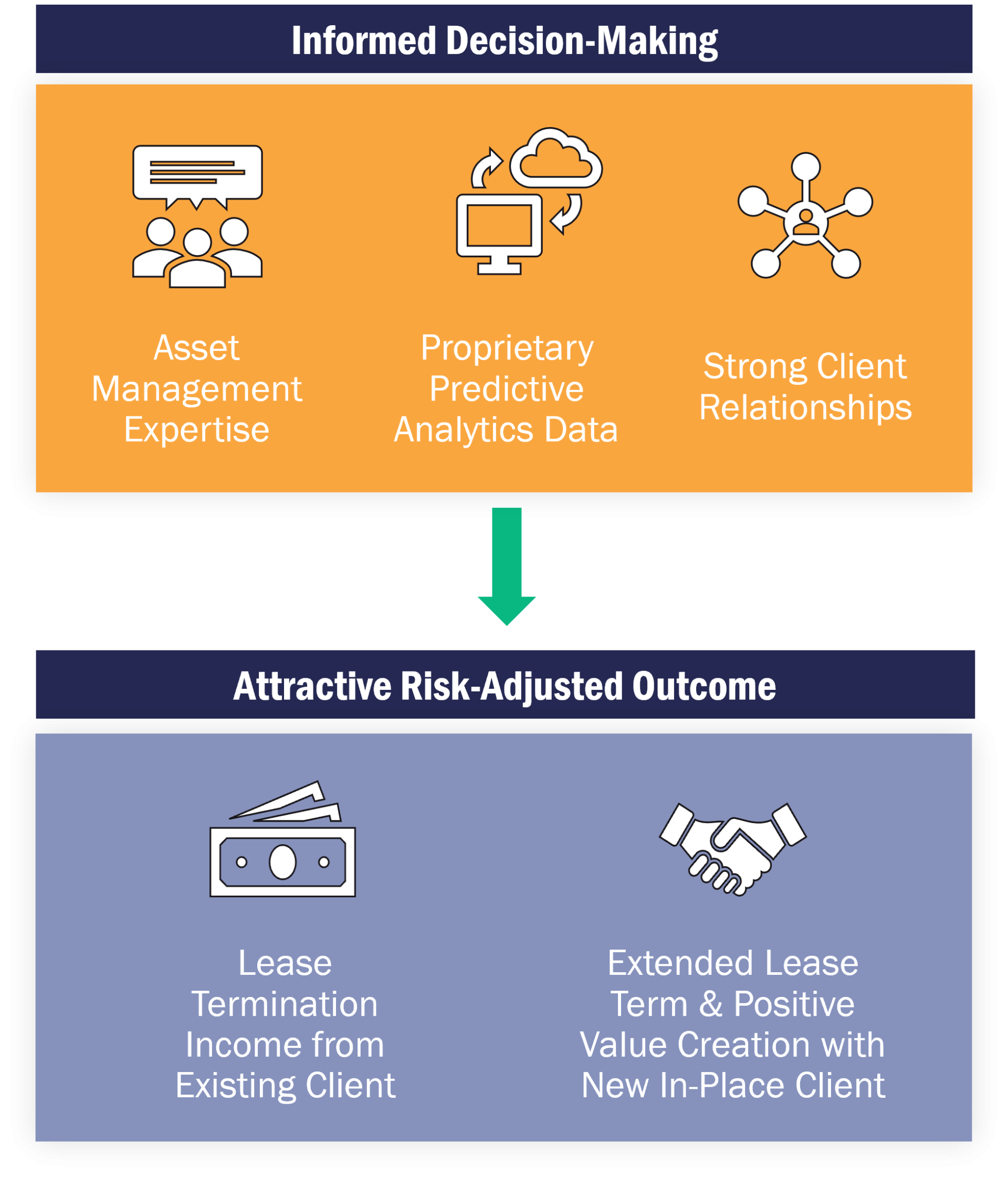 Our asset management team employs our Predictive Analytics AI tools and models to selectively pursue early lease terminations ahead of potential unanticipated vacancies; generating incremental value by monetizing remaining lease terms, and coincidentally re-leasing and repositioning the assets—driving both unplanned additional rental revenues, as well as growing asset valuations. We proactively pursue these opportunities only when the lease termination income and new rental income with longer lease term offers what we believe will be a better economic outcome.